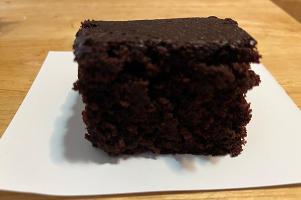 Oh my! This may be my new snacking cake! Fluffy, moist and chocolatey (probably due to the coffee). I only put in 1-3/4 cup of sugar instead of the 2 cups. It was still wonderfully sweet and did I mention chocolatey. I opted not to dust with confectioner's sugar nor top with frosting. It would be yummy though.